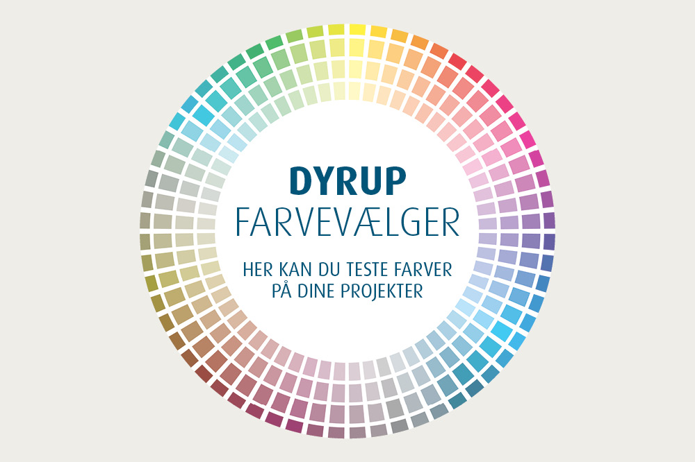 Prøv dine farveideer af med farveværktøjet Dyrup Farvevælger. Du kan nemt lege med farverne på både mobiltelefon, computer og tablet.