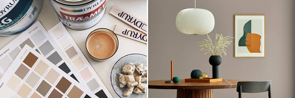 Ønsker du et soveværelse, der emmer af ro og nordisk minimalisme, kan du dykke ned i vores neutrale farvepalet. Skal der omvendt være smæk på farverne, når teenageren skal forny sit værelse, så har vi hos Dyrup også farveskalaer i kulørte farver. Hvis du gerne vil finde flere farver, der passer sammen, har vi udvalgt fem farver inden for hver nuance, der går godt sammen.Herved kan du nemtindrette dit hjem med en bred farvepalet, uden det forstyrrer øjet.