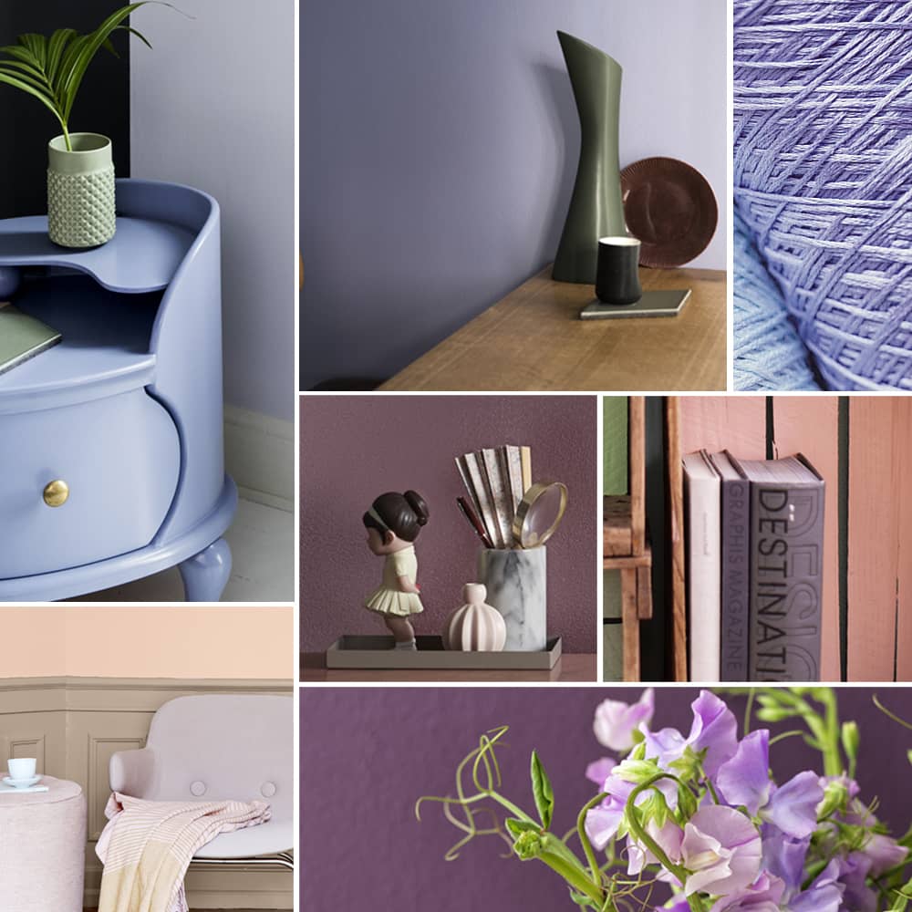 Ønsker du at nedtone det feminine udtryk, kan du eksempelvis tilsætte mørke træsorter og brune farver i indretningen. Sætter du lilla sammen med brune eller orange nuancer, skaber du et smukt, nutidigt retrounivers med referencer til 1970’erne.