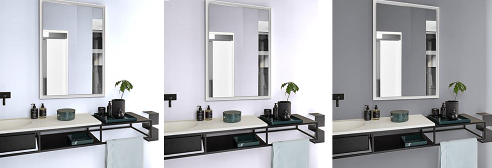 Nedenfor er samme rum med 3 forskellige lilla nuancer, som hver især giver et forskelligt udtryk.