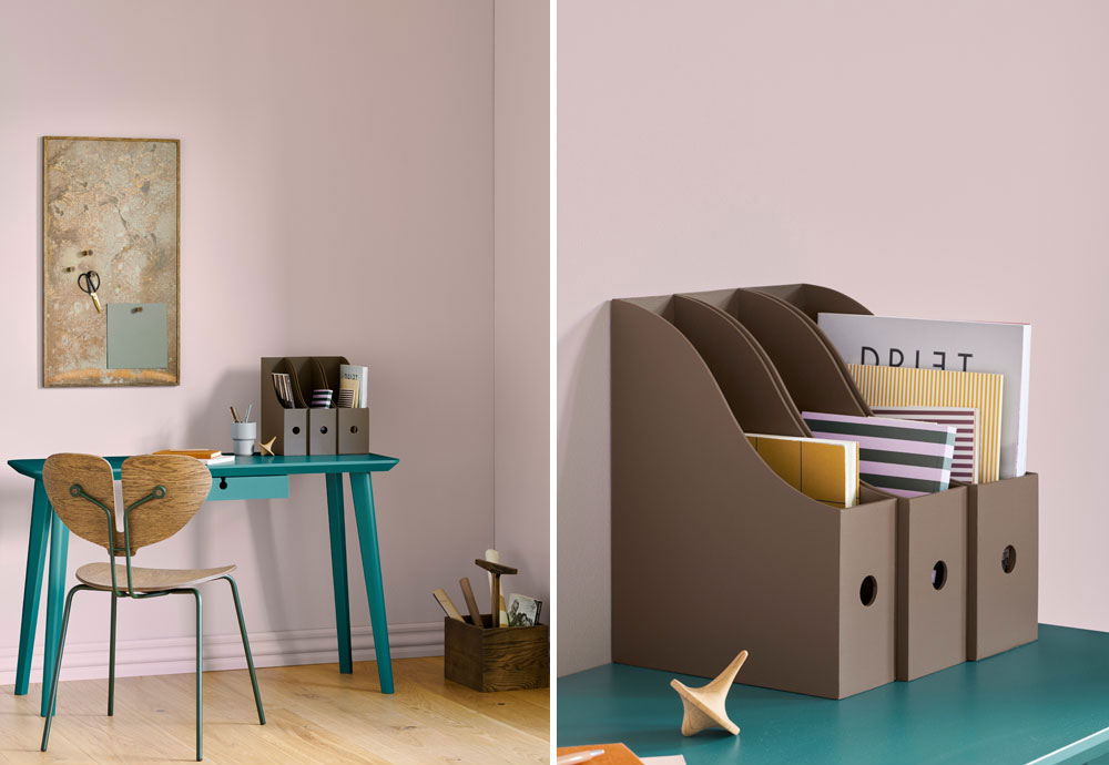 Opbevaring er vigtig på hjemmekontoret, da man ofte har papirer eller bøger, som skal bruges i arbejdet. Find nogle magasinholdere af træ og mal dem i en farve, der passer til resten af kontorets indretning, så har du altid, de ting du skal bruge lige ved hånden.