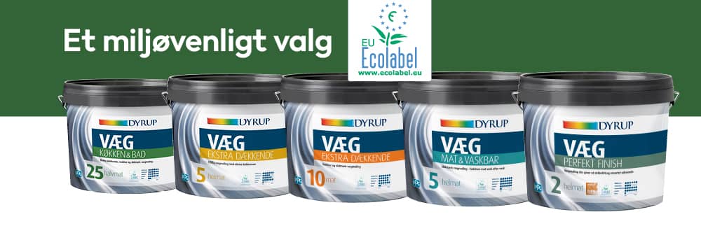 Ved maling af væg, er det vigtigt, at du vælger den rigtige vægmaling. I vores sortiment finder du kvalitetsmaling til alle hjemmets rum. Det er for eksempel ikke ligegyldigt hvilken slags maling du bruger, hvis du vil male badeværelse eller køkken. Hvis du skal male i køkken eller bad, skal du vælge en vådrumsmaling til din væg. Ved maling af væg i gangarealer eller på børneværelser bør du vælge en slidstærk og rengøringsvenlig maling som fx Dyrup Mat og Vaskbar. Når du vælger miljømærket vægmaling er du sikret et produkt med en rigtig god dækkeevne og rækkeevne.