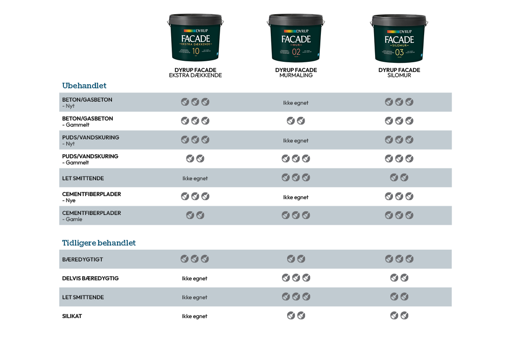 For at opnå et godt resultat, du bliver glad for i mange år, bør du blandt andet sikre dig, at facaden er sund og bæredygtig. Det betyder, at der ikke må være fugt i facaden, ligesom du skal sikre dig, at den ikke skaller. Nedenfor guider vi dig igennem processen trin for trin. Hvis du har spørgsmål, anbefaler vi, at du kontakter din lokale DYRUP-forhandler.